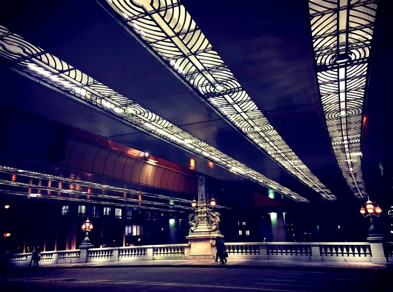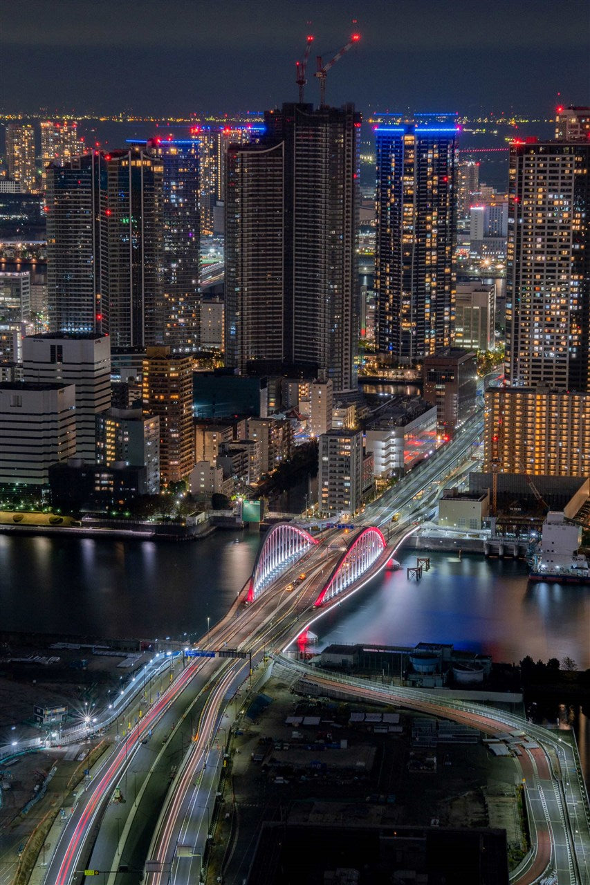 作为夜景,我认为这是一部非常巧妙地表现了日本桥的氛围的作品。在以麒麟像为中心捕捉的同时,活用像河流一样的首都高速公路高架部分的照明,完成了与日本桥高栏的阴影对比的写实远近感的作品。