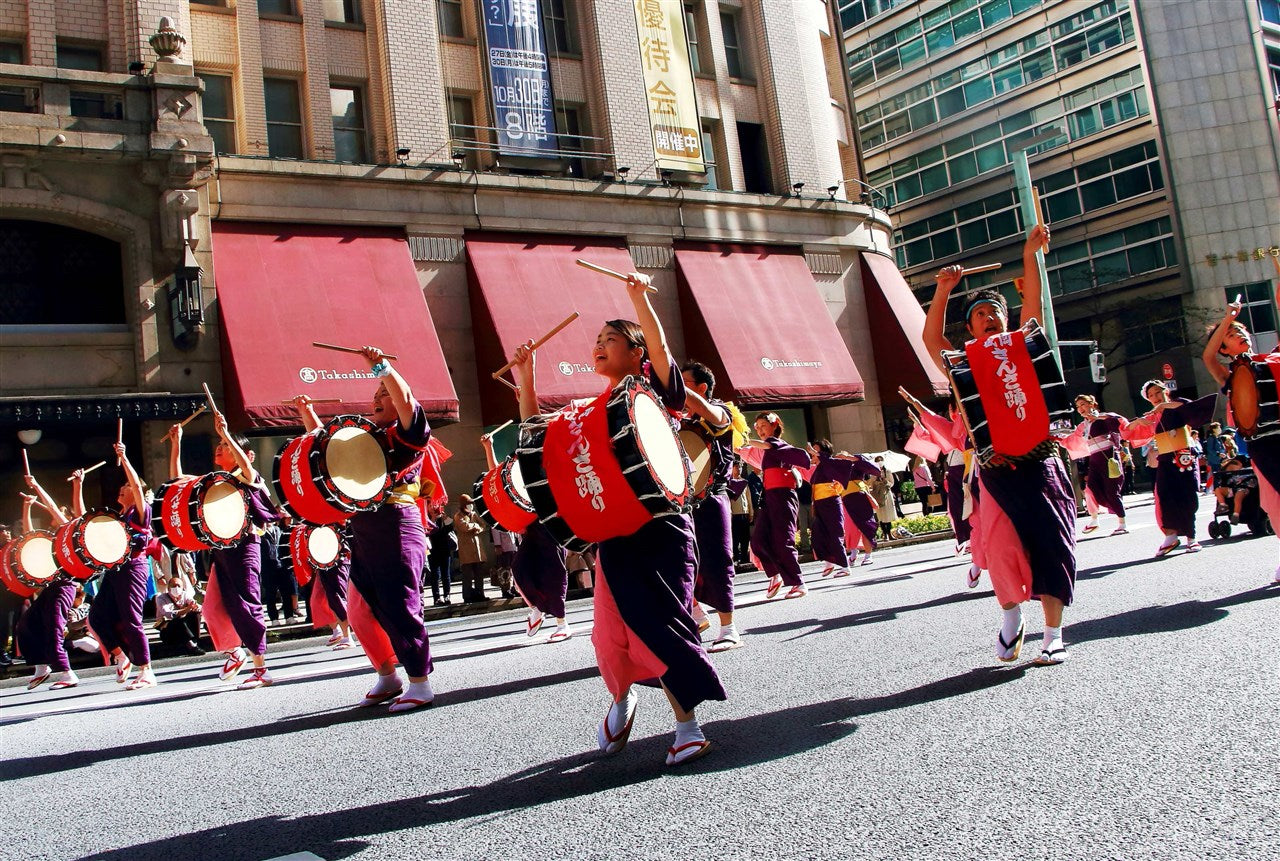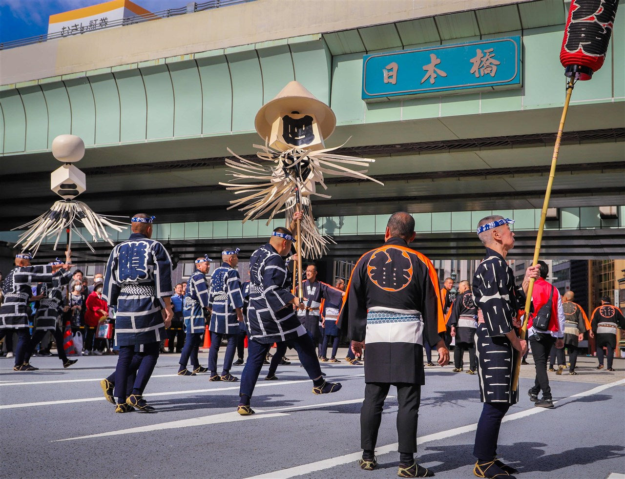 这是在“日本桥·京桥祭”的“大江户纯粹游行”中的一个镜头。江户消防纪念会的各位,展示了木遣和缠舞等江户消防灭火技术。我想起了江户时代的文化和传统。