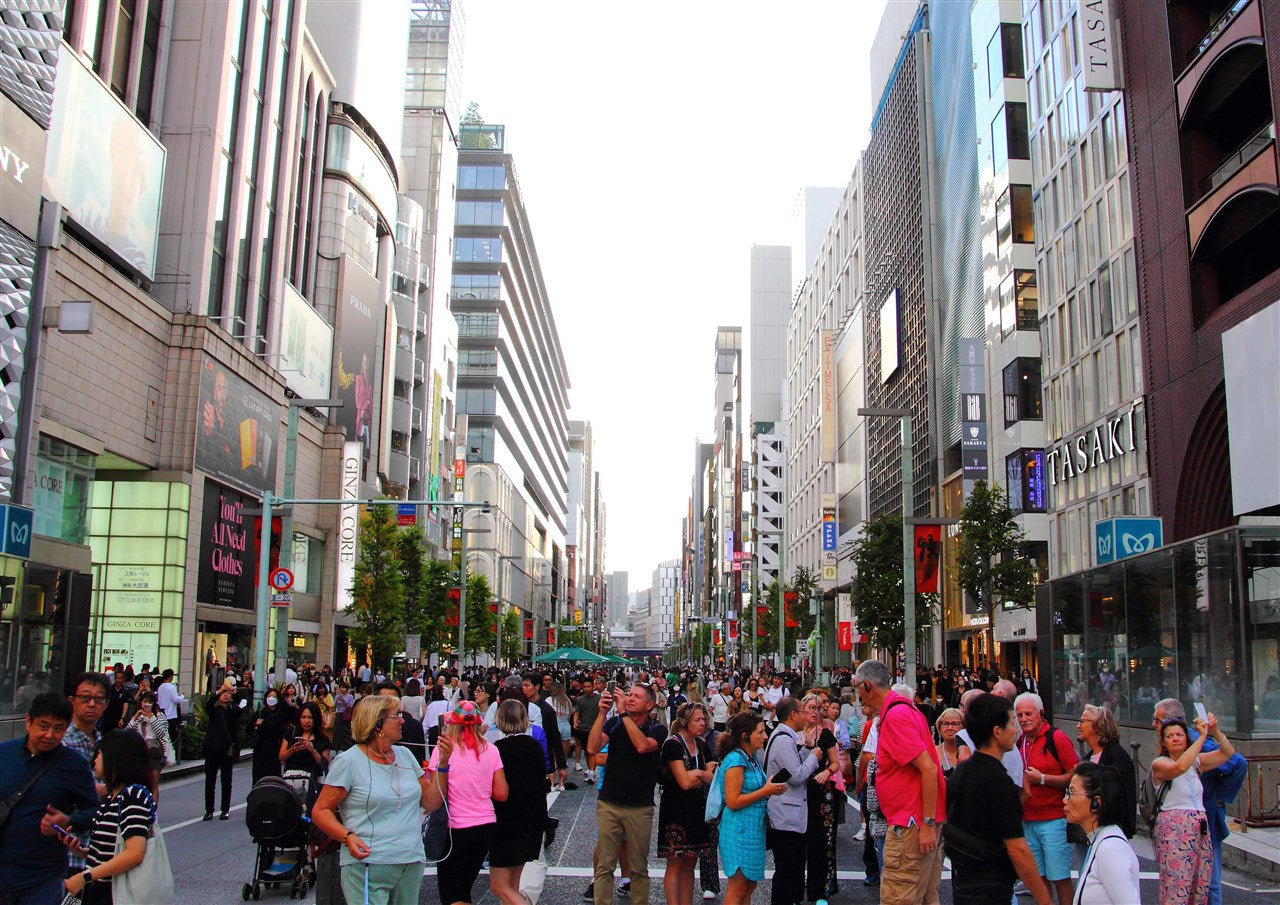 银座有着优雅的氛围,我自古以来就很喜欢,现在也时常去拜访。这次正好是周六的步行街日,人手之多和最重要的是各个国家的游客都很吃惊。各国的人们在银座阔步前行,感受到了对未来光明的全球世界的希望